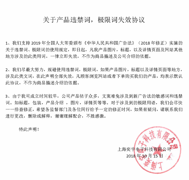 關(guān)于產(chǎn)品違禁詞,極限詞失效協(xié)議